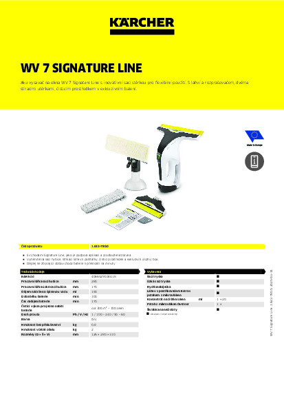 - Výhody řady Signature Line - Podpis zakladatele společnosti Alfreda Kärchera označuje výrobek jako nejlepší zařízení Kärcher ve své kategorii. Mezi další exkluzivní výhody patří podpora aplikací a prodloužená záruka.