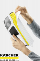 Okna, zrcadlové plochy, skleněné stoly, obkladačky a veškeré další hladké povrchy vyčistíte bez námahy vibračním bateriovým čističem KV 4 včetně dvou potahů, 4 čisticích prostředků á 20 ml, nabíječky a dalších výhod. Díky elektrickému nanášení vody v kombinaci s vibrací se nečistoty z povrchu rozpustí téměř samy – zcela bez nepříjemného drhnutí. K intuitivní obsluze zručného vibračního bateriového padu postačí dva jednoduché obslužné prvky. Doba přípravy je minimální: Jednoduše naplníte nádrž přiloženým koncentrátem čisticího prostředku a vodou, a můžete jít na věc. Potah vibračního čističe KV 4 můžete navíc prát a tím ho opětovně použít. Po použití vibračního bateriového padu nejlépe vysajte zbývající tekutinu bateriovým vysavačem na okna Kärcher.