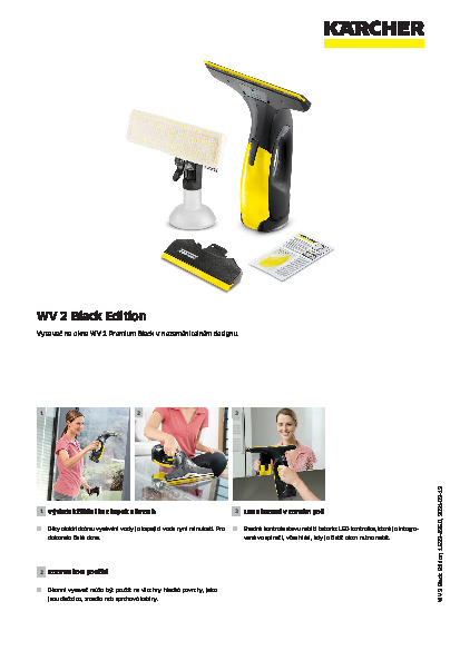 Vysavač na okna Kärcher WV 2 Premium Black Edition zaujme moderním designem i skvělým výkonem. Na jedno nabití vydrží až 35 min. Za tuto dobu s tímto vysavačem na okna odvedete velký kus práce, protože všechny čističe oken Kärcher zaručují třikrát kratší dobu úklidu než při používání běžných prostředků. Vizuálně se stroj liší svým atraktivním černobílým designem, kovovým logem na sací hlavě a dodatečným logem speciálního vydání na straně. Samozřejmě také obsahuje lahev s rozprašovačem, potah z mikrovlákna, čisticí prostředek, a navíc úzkou sací hubici, která je ideální pro menší a hůře dostupné plochy. Výhodou je především bateriový pohon, kdy nemusíte řešit problémy spojené s přístroji na kabel. Tento okenní vysavač má za úkol vysát přebytečnou vodu z ploch, a to bez přímého kontaktu s nečistotami. Výsledkem jsou dokonale vyčištěné a lesklé povrchy bez šmouh.