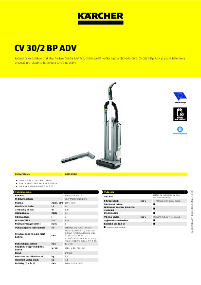 KÄRCHER AKU KARTÁČOVÝ KOBERCOVÝ VYSAVAČ CV 30/2 Bp Adv + Dárek: Baterie nebo rychlonabíječka s 50% slevou!