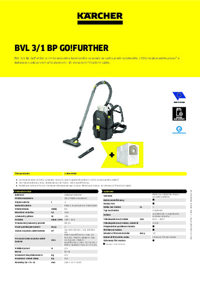 KÄRCHER Vysavač na záda BVL 3/1 Bp Go!Further + DÁREK: BATERIE NEBO RYCHLONABÍJEČKA S 50% SLEVOU!