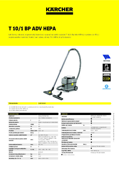Vysavač Kärcher T 10/1 Bp Adv HEPA + DÁREK: BATERIE NEBO RYCHLONABÍJEČKA S 50% SLEVOU!