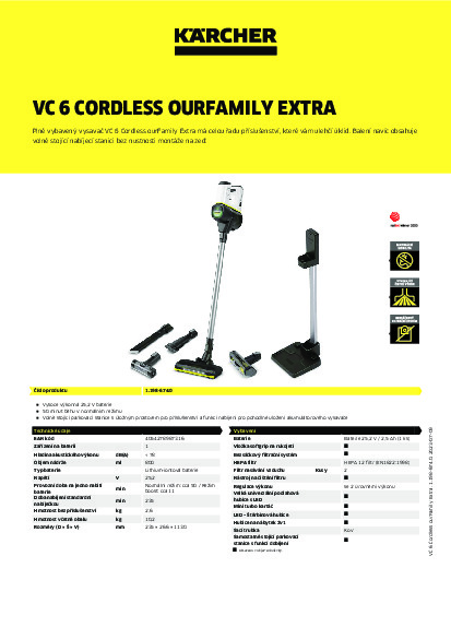 DomůVysavačeHobby (pro domácnost)Bateriové vysavačeTyčový vysavač Kärcher VC 6 CORDLESS ourFamily Extra