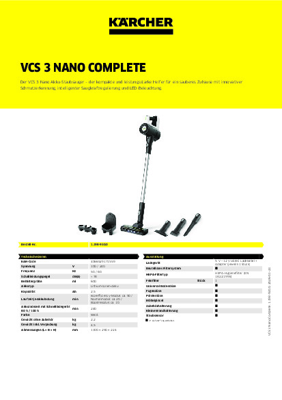 DomůVysavačeHobby (pro domácnost)Bateriové vysavačeTyčový vysavač Kärcher VCS 3 Nano Complete