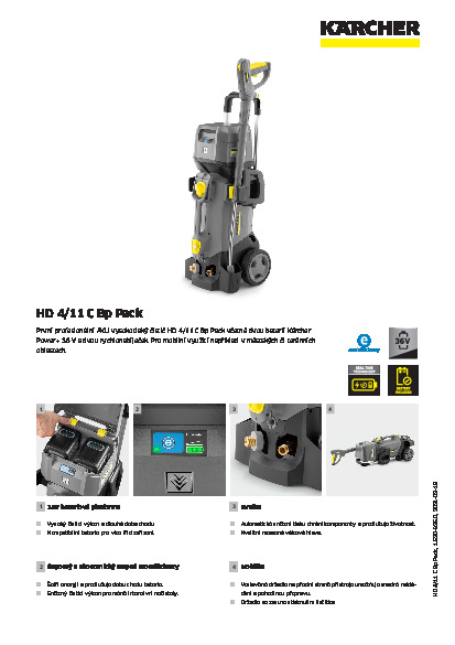 První profesionální AKU vysokotlaký čistič HD 4/11 C Bp Pack včetně dvou baterií Kärcher Power+ 36 V a dvou rychlonabíječek. Pro mobilní využití například v městských či terénních oblastech.