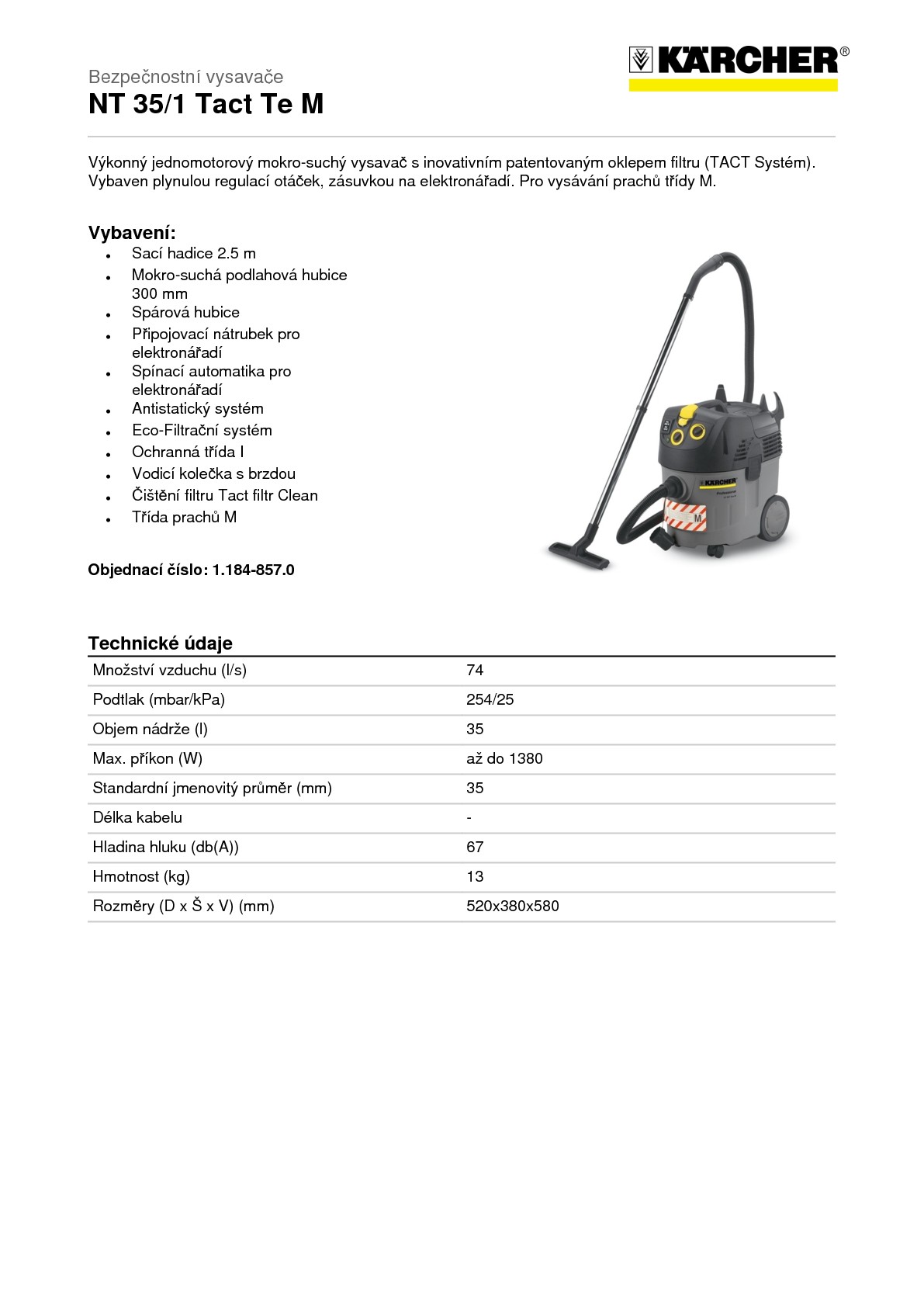 Bezpečnostní vysavač Kärcher NT 35/1 Tact Te M