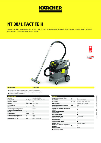 DomůVysavačeBezpečnostníKärcher mokro-suchý vysavač NT 30/1 Tact Te H