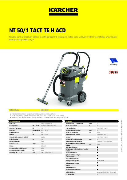 Bezpečnostní vysavač KÄRCHER NT 50/1 Tact Te H ACD