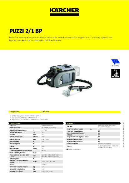 Extraktor KÄRCHER Puzzi 2/1 Bp + DÁREK: BATERIE NEBO RYCHLONABÍJEČKA S 50% SLEVOU!