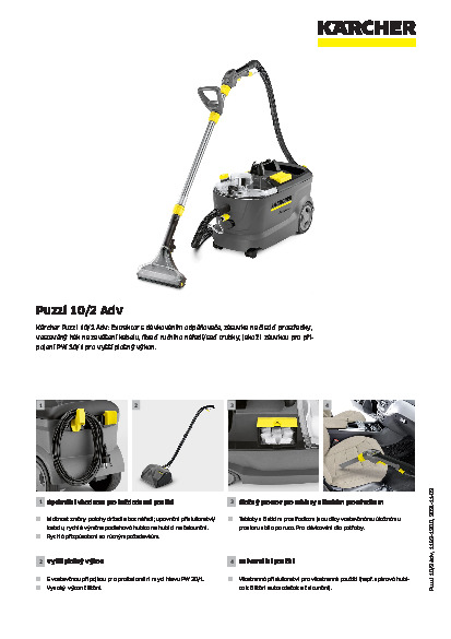 - Vyšší plošný výkon - S vestavěnou přípojkou pro profesionální mycí hlavu PW 30/1. Vysoký čisticí výkon. Integrovaný válcový kartáč k napřímení kobercového vlasu. Extraktor Puzzi 10/2 Adv: Úložný prostor pro tablety s čisticím prostředkem