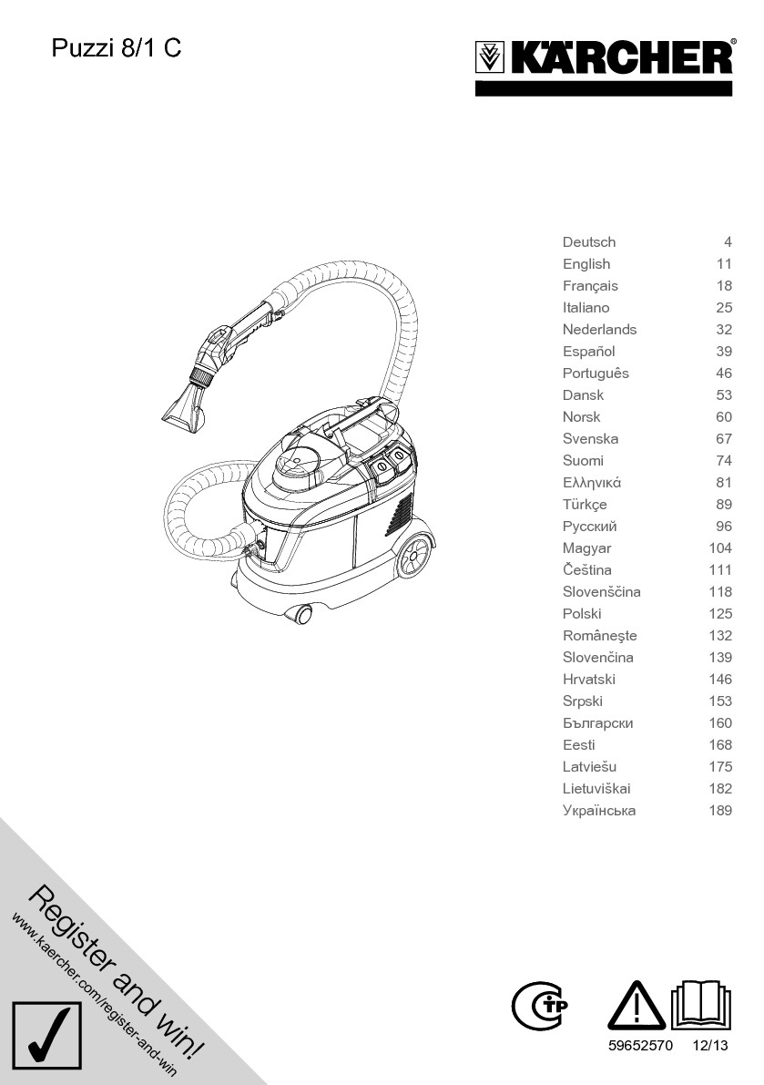 Přístroj Puzzi 8/1 C je výkonný extraktor základní třídy. Extraktor může být cíleně použit pro čištění čalounění nebo pro odstraňování skvrn na kobercových plochách. Protože po čištění zůstává velmi malé množství zbytkové vlhkosti, mohou být vyčištěné koberce a čalounění rychle znovu využívány. Sériově vybavený nástřikovou sací hadicí a ergonomicky tvarovanou ruční hubicí.