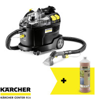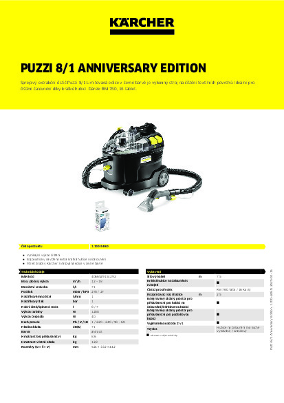 Limitovaná edice černého stroje na extrakční čištění Puzzi 8/1 Go!Further, vyrobeného z 44% recyklovaného plastu¹⁾, je dodáván s exkluzivním příslušenstvím, a to 1litrovou lahví čisticího prostředku RM 764N OA. Extrakční čistič zajišťuje hygienické výsledky při čištění čalounění a odstraňování skvrn z textilních povrchů a zaujme svou vysokou efektivitou. Důkladné čištění je dosaženo nastříkáním čisticího roztoku hluboko do vláken a následným vysátím uvolněných nečistot. Efektivní sací výkon také umožňuje rychlé sušení a rychlé opětovné užívání čištěných ploch. Stroj splňuje vysoké nároky profesionálů v oblasti čištění v hotelovém a gastronomickém průmyslu i při čištění interiérů vozidel. Standardní, extra krátká hubice na čalounění usnadňuje čištění i v těsných prostorech. Nízká hmotnost v kombinaci s ergonomickou rukojetí umožňuje snadnou přepravu pouze jednou rukou. Průhledný kryt stroje a ruční hubice poskytují jasný přehled o znečištěné vodě.