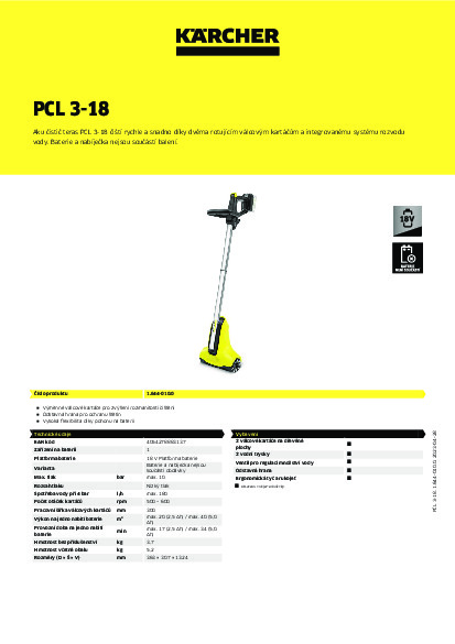 Čistič teras Kärcher PCL 3-18 + DÁREK: SADA BATERIE S RYCHLONABÍJEČKOU 18/25 ZA 1,-Kč!