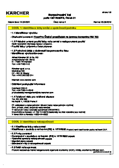 - EUH 210 Na vyžádání je kodispozici bezpečnostní list.