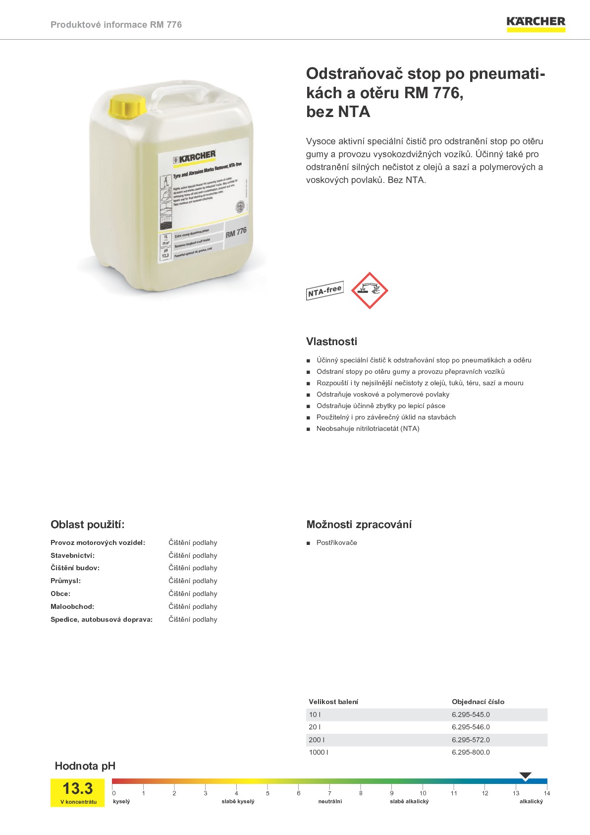 - Účinný speciální čistič k odstraňování stop po pneumatikách a oděru.