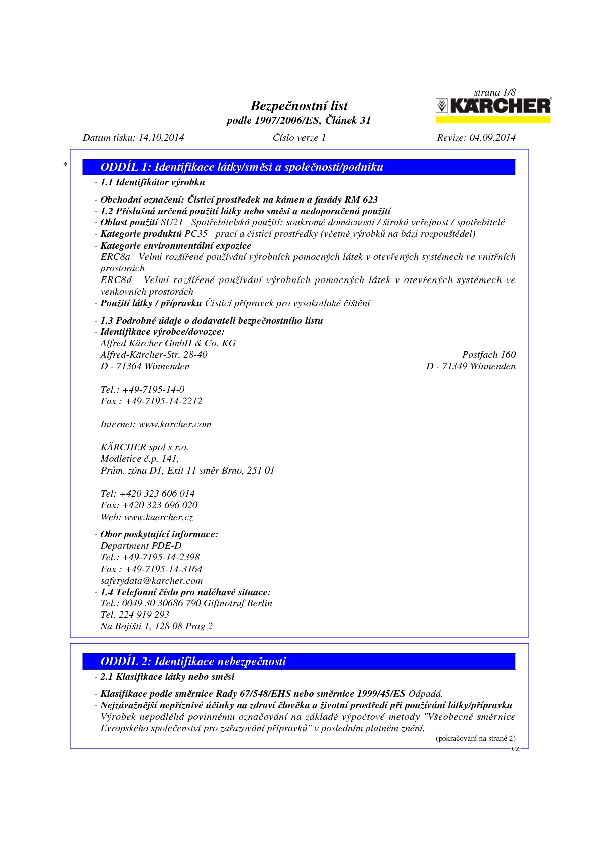 - EUH210 Na vyžádání je k dispozici bezpečnostní list.
