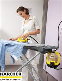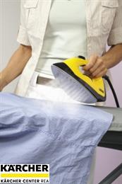 Napařovací žehlička s lehce klouzající žehlící plochou z nerez oceli zaručuje dokonalý a časově nenáročný výsledek žehlení. Žehlicí prkno KÄRCHER AB 1000 disponuje funkcí vydouvání a aktivním odsáváním páry.