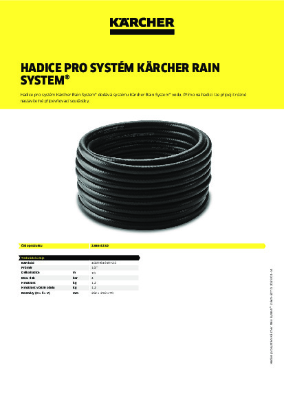 Hadice pro systém Kärcher Rain System™ dodává systému Kärcher Rain System™ vodu. Přímo na hadici lze připojit různě nastavitelné připevňovací součástky.