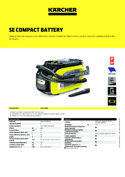 Aku tepovač KÄRCHER SE 3-18 COMPACT BATTERY + DÁREK: SADA BATERIE S RYCHLONABÍJEČKOU 18/25 ZA 1,-Kč!