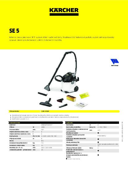 DomůStroje na čištění koberců a čalouněníHobby (pro domácnost)Kärcher čistič koberců a mokro-suchý vysavač SE 5