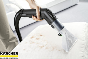 Tepovač koberců SE 4002 je vybaven komfortním systémem 2v1 s integrovanou vakuovou hadicí ve spreji a přídavnou tryskou pro čištění čalounění. Čistí hluboko do vláken textilních povrchů (např. koberce, matrace, autosedačky atd.). Čistič koberců RM 519 se pod tlakem nastříká hluboko do textilních povrchů a odstraňuje se společně s rozpuštěnými nečistotami. Alergici mohou snadněji dýchat (ideální i pro domácnosti s mazlíčky). Technologie trysky Kärcher zajišťuje velmi rychlé schnutí. Další vlastnosti tepovače: velká odnímatelná nádrž na čistou vodu (4 litry, nárazuvzdorná a průsvitná pro snadnější plnění a vyprazdňování), rukojeť 3v1 (pro komfortní přenášení, otevírání, zavírání a vyprazdňování nádoby stroje), hák šňůry a praktické příslušenství na kontejner. Tento vysavač s tepovačem lze využit i na víceúčelové suché a mokré vysávání i na běžné vysávání v domácnosti.