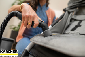 Praktický tepovač SE 2 Spot je dokonalým pomocníkem pro okamžité a cílené odstranění skvrn z čalounění a textilií. SE 2 Spot si rychle poradí s nečistotami a pachy a účinně odstraní například skvrny od jídla a nápojů. Díky kompaktnímu designu je čistič obzvláště snadno použitelný a při skladování zabírá málo místa. To znamená, že je rychle připraven k použití, kdykoli potřebujete odstranit neočekávané nečistoty. Velký dosah umožněný 4,5metrovým kabelem umožňuje flexibilní čištění kdekoli v místnosti. Praktické úložiště příslušenství na samotném zařízení znamená, že všechny nástavce jsou rychle po ruce a připravené k použití. Včetně trysky pro extrakci čalounění a čisticího prostředku.