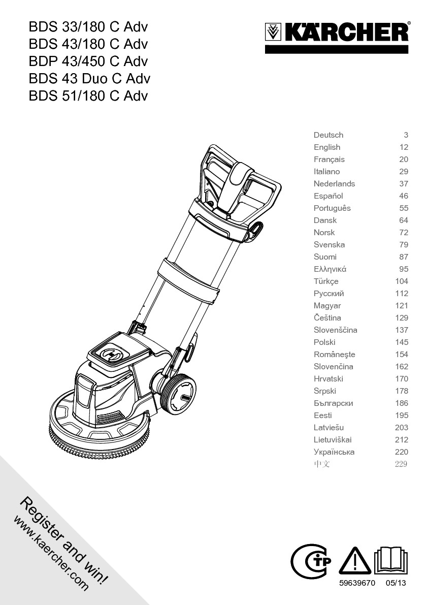 DomůPodlahové mycí strojeJednokotoučovéKärcher BDS 43/180 C Adv jednokotoučový podlahový stroj