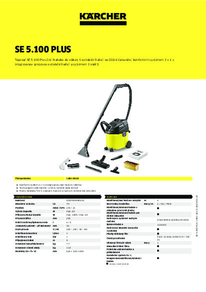 DomůVysavačeHobby (pro domácnost)Pro mokro-suché vysáváníKärcher čistič koberců a mokro-suchý vysavač SE 5.100 Plus