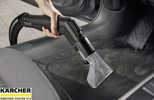 Tepovač SE 6.100, tj. důkladná čistota do hloubky vláken (extrakce s nástřikem). Navíc s hubicí pro čištění polstrování a komfortním systémem 2v1 s integrovanou sací hadicí k nástřiku.