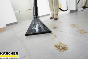 Tepovací vysavač SE 6.100 se prezentuje v atraktivní bílé barvě. Všude tam, kde je požadováno hygienické čištění do hloubky vláken, najde uplatnění právě tepovač Kärcher SE 6.100, který je vhodný pro čištění koberců i tvrdých ploch. Čisticí kapalina je vstřikována pod tlakem hluboko do vláken a opět odsávána spolu s rozpuštěnými nečistotami – ideální řešení pro alergiky a domácnosti se zvířaty. Součástí dodávky jsou hubice na čištění koberců i hubice na hloubkové čištění polstrování, např. nábytku nebo autosedaček. Kromě toho přesvědčí tento tepovač na koberce dalšími komfortními prvky: šroubové uzávěry, velká tlačítka, systém 2v1 s integrovanou sací hadicí, systém dvou nádrží (vyjímatelná nádrž čisté a špinavé vody), ergonomicky tvarovaná rukojeť pro jednoduchou přepravu stroje, praktická úschova příslušenství, plochý skládaný filtrem pro suché a mokré vysávání a praktická klapka filtru pro jeho vyjmutí bez kontaktu s nečistotami. Tento čistič koberců Kärcher lze využít i jako vysavač na suché a mokré vysávání.