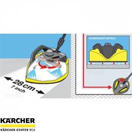 S čističem ploch T-Racer T 450 vyčistíte velké venkovní plochy efektivně, bez stříkající vody a oproti čištění s pracovním nástavcem o cca 50 % rychleji. Důvodem je rotační rameno s tryskou Twin jet, které zajišťuje velkoplošné odplavení nečistot. Doplňková tryska Power, kterou můžete aktivovat pohodlně nožním pedálem, umožňuje účinné čištění rohů a okrajů. Mimo to je tento čistič ploch vybaven speciální ochrannou mřížkou, která umožňuje čištění japonských zahrad a dalších štěrkových povrchů. Změnou vzdálenosti trysky od čištěného objektu přizpůsobíte tlak svým potřebám. Tak můžete čistit jak tvrdé povrchy, jako je kámen a beton, tak i citlivější povrchy, jako je dřevo. Díky Hovercraftově efektu lze s čističem T-Racer T 450 obzvláště snadno manipulovat. Dokonce i čištění svislých ploch, jako jsou garážová vrata, zvládnete díky praktické rukojeti během okamžiku. Čistič ploch T-Racer T 450.