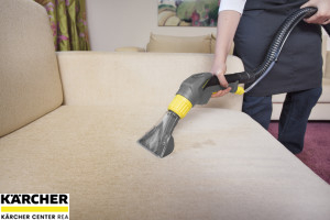 Výkonný extrakční čistič Puzzi 10/1 s hubicí na čalounění důkladně a efektivně odstraňuje skvrny z textilních povrchů, jako jsou čalouněné nábytek nebo sedadla vozidel.