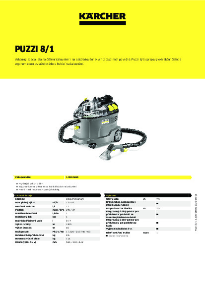 Robustní, odolný, účinný: Sprejový extrakční čistič Puzzi 8/1 působivě čistí čalounění a odstraňuje skvrny z textilních povrchů s vynikajícími a hygienickými výsledky čištění a vysokou účinností. Kompaktní sprejový extrakční stroj nastříká čisticí roztok hluboko do textilních vláken a poté jej opět odstraní s uvolněnými nečistotami. Tento vynikající výkon zpětného sání také zajišťuje rychlé schnutí a znamená, že textilní povrchy lze rychle znovu použít – ideální pro vysoké nároky profesionálů v oblasti úklidu v hotelovém a pohostinském sektoru nebo při čištění interiérů vozidel. Lze použít i standardní extra krátkou hubici na čalounění pro pohodlné a ergonomické čištění úzkých prostor. Díky velmi nízké hmotnosti a ergonomické rukojeti lze sprejový extrakční čistič snadno přenášet jednou rukou. Pohodlí pro uživatele zvyšují také velká tlačítka, která lze ovládat rukou nebo nohou. Víko přístroje a ruční tryska jsou průhledné pro lepší výhled na špinavou vodu.