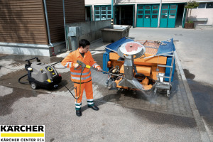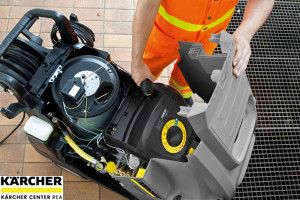 Třífázový Kärcher HDS 8/18-4 C je nejvýkonnějším vysokotlakým čističem s ohřevem třídy Kompakt a boduje svým 4-pólovým, vodou chlazeným elektromotorem a stupněm eco!efficiency.