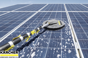 Příslušenství pro vysokotlaké čističe s průtokem vody 1 100 až 1 300 l / h: iSolar 400 je kotoučový kartáč poháněný vodou s pracovní šířkou 400 mm. Je zvláště vhodný pro čištění malých až středních fotovoltaických systémů, protože je lehký a snadno se s ním manipuluje. To znamená, že zvýšené systémy lze také rychle a pohodlně čistit.