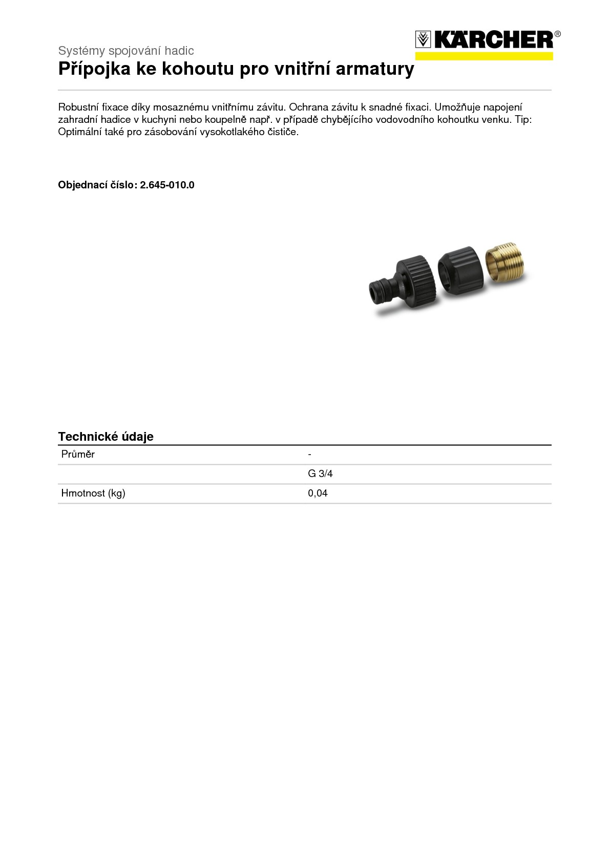DomůZahradní technikaRychlospojky, přípojky a spojkyKärcher Kohoutová přípojka pro vnitřní armatury