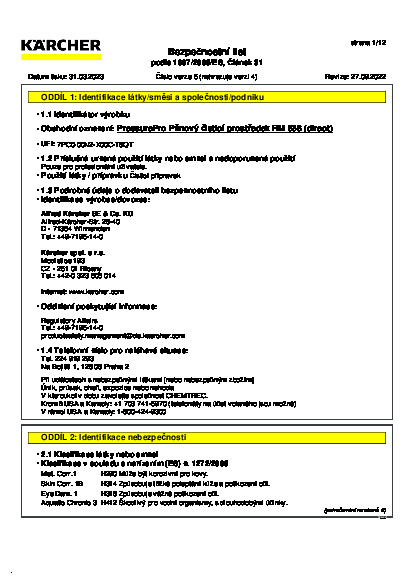 - P305 + P351 + P338 PŘI ZASAŽENÍ OČÍ: Několik minut opatrně vyplachujte vodou. Vyjměte kontaktní čočky, jsou-li nasazeny a pokud je lze vyjmout snadno. Pokračujte ve vyplachování.