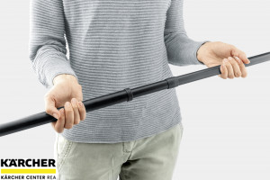 S teleskopickou prodlužovací sadou pro okenní čistič a vibrační bateriovou stěrku můžete čistit i velmi vysoká okna. Možnost vytažení od 0,6 do 1,5 metru délky.