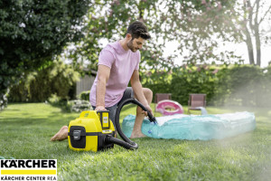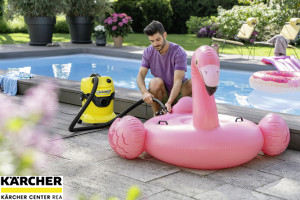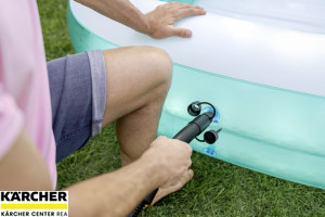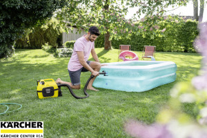 Zajišťuje snadné nafukování a vyfukování nafukovacích matrací, bazénů, nafukovacích člunů atd. pomocí vysavače pro mokré a suché vysávání Kärcher Home & Garden.