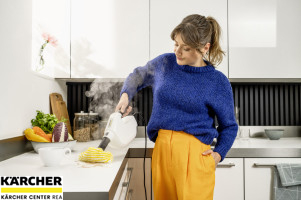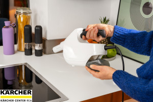 Kompaktní parní mop SC 1 Multi & Up čistí bez použití chemikálií a lze jej v mžiku použít k hloubkovému úklidu celého domu, a to buď jako multifunkční ruční parní čistič, nebo jako všestranný parní mop 3 v 1 díky sadě velkých podlahových hubic EasyFix, která je součástí balení. Pracuje ve třech různých polohách zařízení - horní, střední a dolní - a dokonale se přizpůsobí individuálním požadavkům. Důkladné čištění parním čističem Kärcher odstraní z tvrdých povrchů až 99,999 % virů* a 99,99 % všech běžných domácích bakterií**. Díky kompaktnímu a praktickému designu se přístroj pohodlně používá a snadno se skladuje i v těch nejmenších prostorách. SC 1 Multi & Up je připraven k použití během 30 sekund a díky odnímatelné nádržce na vodu se snadno doplňuje - to znamená, že nemusíte dlouho čekat ani přerušovat práci. Vyměnitelná odvápňovací kazeta zajišťuje automatické odstraňování vodního kamene, čímž je životnost výrobku pětkrát delší. Světelný LED displej s ovládacím panelem umožňuje jednoduché a bezproblémové ovládání. Na displeji jsou vždy zobrazeny různé režimy, jako je ohřev, připravenost k použití, parní režim a termín výměny patrony.