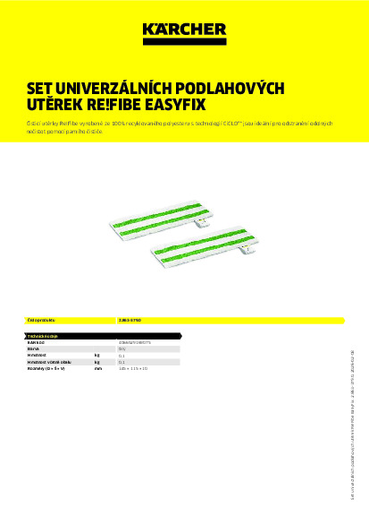 DomůParní čističePříslušenstvíKärcher Set univerzálních podlahových utěrek Re!Fibe EasyFix