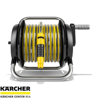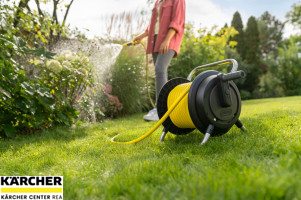 Mobilní použití a kompaktní skladování: naviják na hadici zajišťuje pohodlné zavlažování a prostorově úsporné skladování zahradní hadice. Kompletní sada obsahuje 10 m zahradní hadice, spojky, adaptéry na vodovodní kohoutek a zahradní trysku. Pomocí volně se pohybující kliky lze zahradní hadici bez námahy srolovat a přehledně a pečlivě uložit, aniž by se zamotala. Výrobek boduje také svým kompaktním designem, ergonomickou rukojetí pro pohodlnou přepravu a vysokou stabilitou díky nízkému těžišti. Výrobek je také odolný vůči UV záření a mrazu. Úložné jednotky na hadice Kärcher se vyznačují robustností a dlouhou životností a je na ně poskytována pětiletá záruka výrobce. Buben na hadici se dodává kompletně smontovaný.