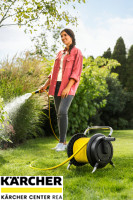 Kompletní sada pro pohodlné zavlažování a úsporu místa při skladování hadice. Připraveno k okamžitému použití s 10 m zahradní hadicí Kärcher, spojkami, adaptérem na vodovodní kohoutek a tryskou.