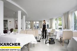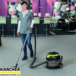 Nový vysoce výkonný a tichý vysavač T 12/1 eco!efficiency najde uplatnění především v oblasti úklidu budov, v hotelech a restauracích, v kancelářích, obchodech, nemocnicích, ale i v domácnostech. U tohoto vysavače jsou výkon motoru, vedení vzduchu a jeho 6-násobný filtrační systém (včetně filtru HEPA jako speciální příslušenství) tak koncipovány, že sací výkon téměř neklesne, i když je filtrační sáček již plný. Výhoda, která se vyplatí: pokud není filtr potřeba tak často měnit, prodlouží se pracovní intervaly. Vysavač lze snadno obsluhovat nožním spínačem. Díky oběma pogumovaným kolům a dvěma vodicím kolečkům je vysavač velmi tichý a dobře ovladatelný. Nízko položené těžiště jej stabilizuje. Integrované uložení kabelu na hlavě turbíny zajišťuje, aby byl síťový kabel vždy uklizený. Mimo to lze síťový kabel navinout na vyklápěcí hák. Díky ergonomicky tvarovanému kolenu ve tvaru „delta“ není nutné se ani při dlouhých intervalech zříkat komfortu. Sací hadice na přístroji má jednoduchou, seč účinnou zástrčnou mechaniku. Zasunete sací hadici do hrdla vysavače, dokud nezapadne elastický kroužek – a je hotovo. Tento systém zajišťuje, že se sací hadice při přitahování vysavače neuvolní. Jako zvláštní příslušenství dodáváme taktéž elektrický sací kartáč, který z vysavače T 12/1 eco!efficiency vytvoří kartáčový vysavač na koberce. Při zvláštních hygienických nárocích lze navíc k fliesovému filtračnímu sáčku filtr HEPA, který zachytí i nejjemnější částečky nečistot.