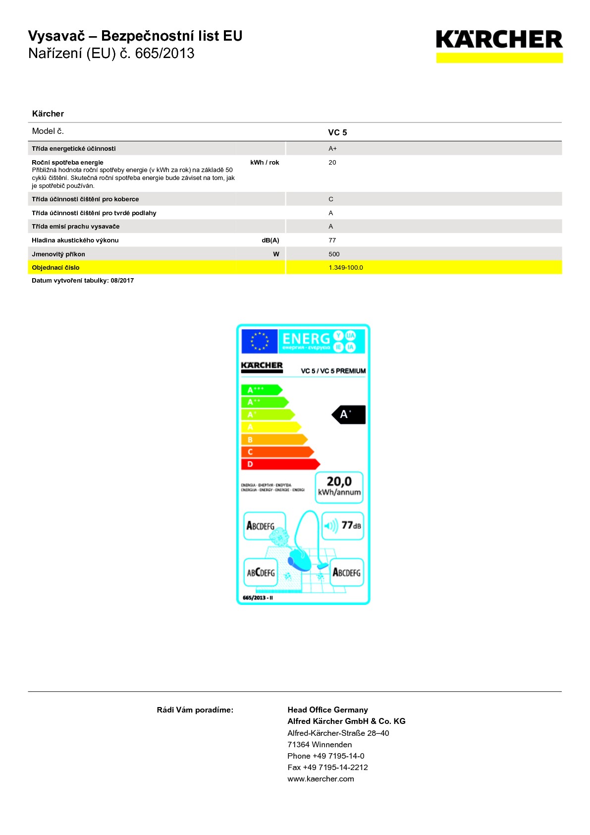 Mimořádný vysavač VC 5 Premium firmy Kärcher dokazuje, že silný vysavač nemusí být velký. Kompaktní přístroj vyniká i přes své malé rozměry jedinečným vybavením a dokáže bez problémů udržet krok s velkými vysavači. Díky patentovanému trojitému teleskopickému systému lze vysavač o polovinu zmenšit. Jednoduše stisknete tlačítko, posunete a hned je vysavač jedním z nejkompaktnějších na světě a lze ho uložit i v nejmenší domácnosti. Za svůj výkon vděčí VC 5 Premium přepínatelné hubici Kärcher pro vysávání suchých nečistot s flexibilním kloubem. Hubice byla vyvinuta speciálně pro tento vysavač, vystačí si s nízkou spotřebou elektrické energie a vynaloží díky své konstrukci a speciální geometrii maximální sílu. A etiketa ErP je pro vysavač VC 5 Premium potvrzením těch nejlepších výsledků čištění na veškerých tvrdých podlahách a kobercích. Další inovací je filtrační systém bez sáčků s integrovaným čištěním filtru, které šetří drahé náhradní filtrační sáčky. Filtrační kazetu lze snadno vyjmout a filtr rychle vyprázdnit. Vysavač VC 5 Premium je skutečným silným trpaslíkem s velkým performance.