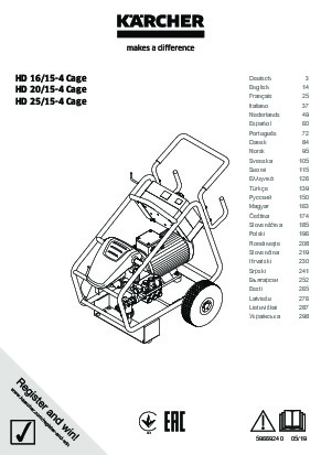 Vysokotlaký čistič HD 25/15-4 Cage Plus se 150 bar pracovního tlaku, průtokem vody 2500 l/h a rámem z ušlechtilé oceli. Ideální pro čištění se zvýšenou intenzitou vody.