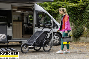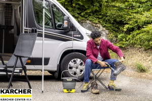 Pro každého, kdo potřebuje čisticí prostředek na cesty, který lze skladovat a přenášet i v tom nejmenším prostoru: kompaktní a lehká skládací tlaková myčka OC 3 od společnosti Kärcher má skládací nádrž na vodu. Tu lze během okamžiku složit na minimální velikost balení a umožňuje prostorově úsporné uložení. Díky lithium-iontovému akumulátoru je přístroj připraven k použití kdekoli a kdykoli a bez časově náročné přípravy: stačí jej naplnit vodou a začít. LED displej poskytuje informace o úrovni nabití baterie. Flexibilní tlaková hadice o délce 1,8 m zajišťuje optimální volnost pohybu při čištění. Ať už v kempu, po projížďce na kole nebo doma na zahradě - mobilní venkovní čistič je ideálním řešením pro rychlé čištění. Pro rozšíření oblastí použití je k dispozici široká škála příslušenství.