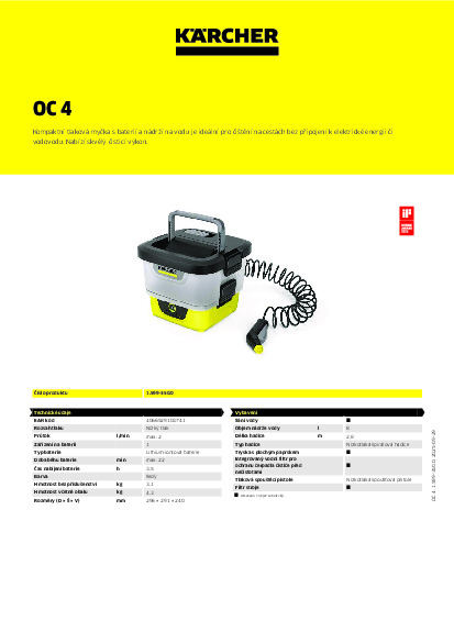 DomůMobilní čištěníMobilní bateriový tlakový čistič Kärcher OC 4