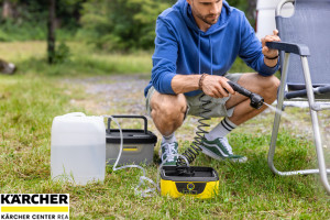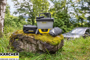 - Čištění na cestách - Nádrž na vodu o objemu 8 litrů a integrovaná dobíjecí baterie usnadňují čištění na cestách - i bez přívodu vody nebo elektrické přípojky. Nádržku lze vyjmout a naplnit z kohoutku nebo jiného zdroje vody a díky nepropustnému uzávěru ji lze bez obav převážet např. v kufru auta. Flexibilní pro použití při mnoha různých úkonech čištění, např. pro jízdní kola, zahradní a kempinkové vybavení, psy nebo kočárky.