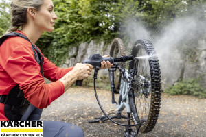 - Soběstačnost a mobilní úklid - Vozík na vodu o objemu 12 litrů umožňuje nezávislé čištění na cestách. Voda vystačí na 3 až 5 silně znečištěných jízdních kol nebo několik předmětů, jako jsou zahradní/kempinkové židle. Nádrž lze naplnit z jakéhokoli kohoutku a díky šroubovacímu uzávěru je odolná proti úniku.